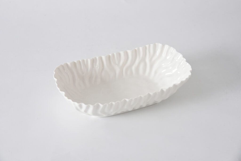 Serve with style and sophistication using the Mascali Bianca Medium Deep Server. Perfectly sized for side dishes, roasted vegetables, or shared appetizers, this elegant piece brings charm and versatility to any table. Crafted in durable, high-fired white porcelain, it’s microwave safe, oven safe up to 500°F, dishwasher friendly, food safe, and tarnish resistant. Everyday elegance with effortless care.